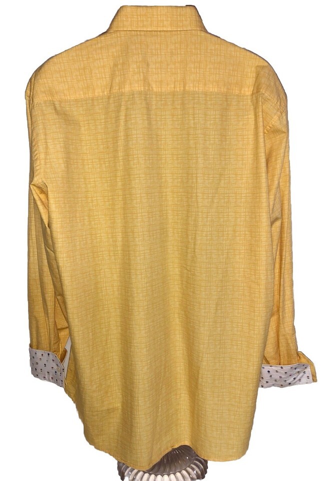 - BUGATCHI Dress Shirt Men’s XXL Beautiful Yellow Button Up Flip Cuffs Long Sleeve