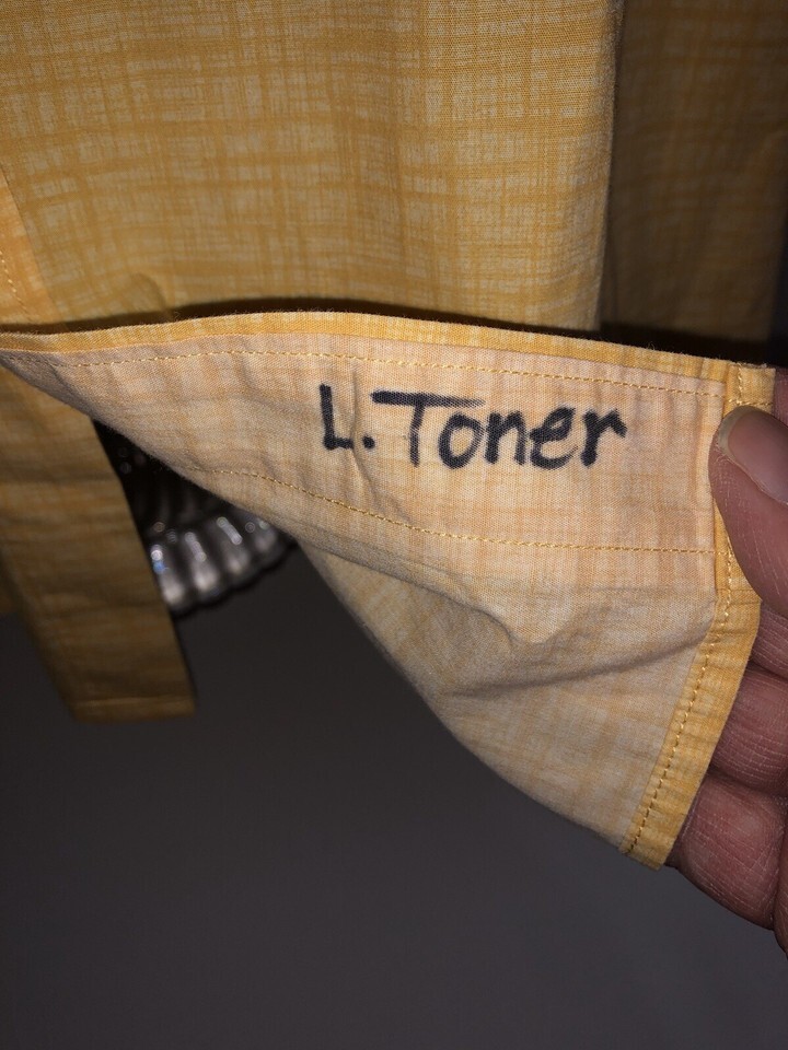 * There is a name written inside left side on the bottom of the shirt. Can not see unless you look inside the flap. See photos as part of the description.