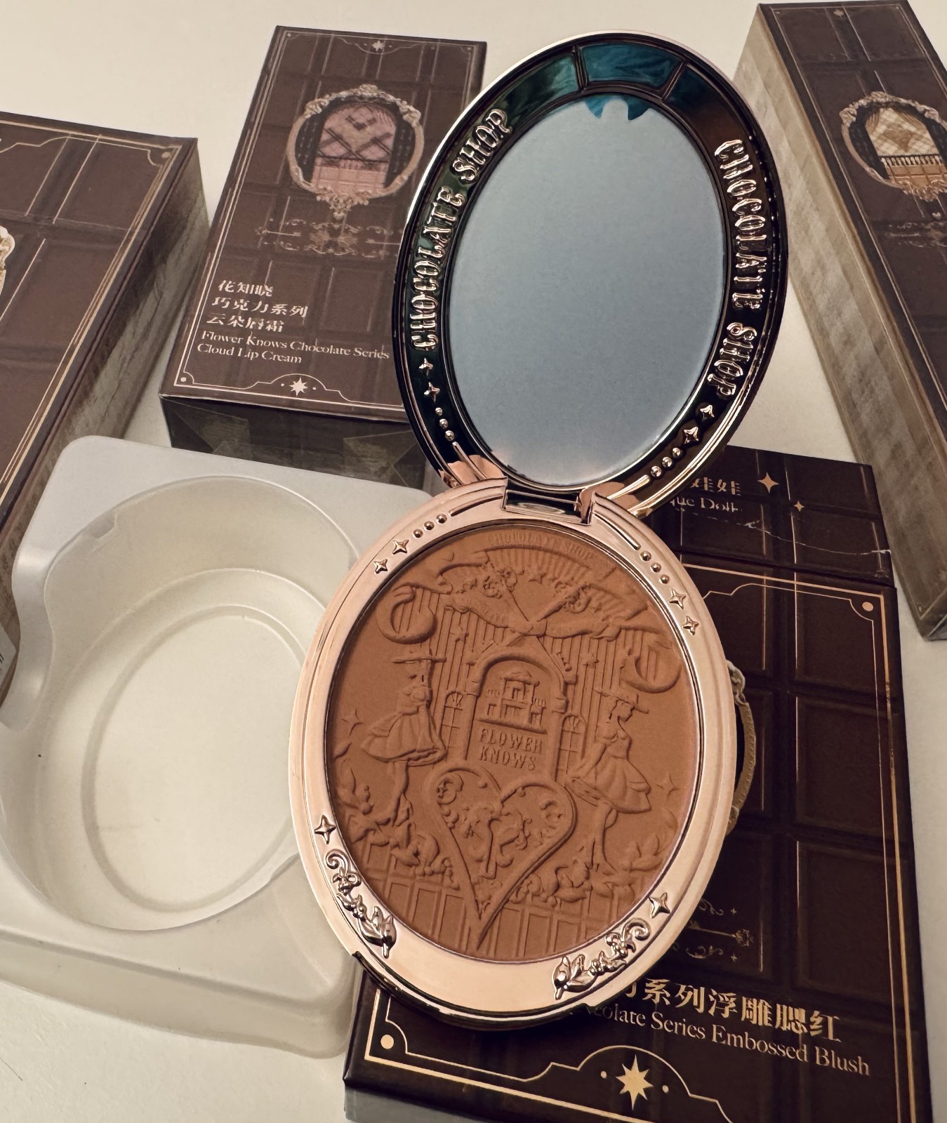 (1) Chocolate Wonder-Shop Embossed Blush - Color / Shade: 04 Antique Doll ( Light brown with natural cream tones )