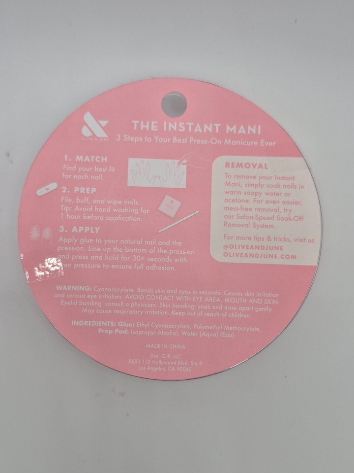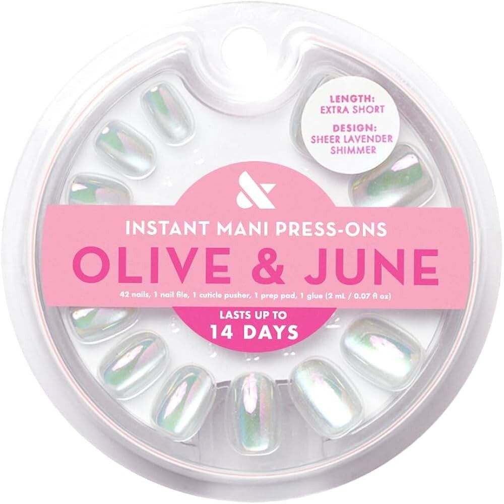 Meet the realest-looking fake nails you've ever seen. The Instant Mani by Olive June. Each package contains 42 total nails and everything you need for a perfect press-on mani at home. Straight from the salon, better than gel. Lasts up to 14 days thanks to non-toxic and non-damaging glue. Fake nails never looked so real.