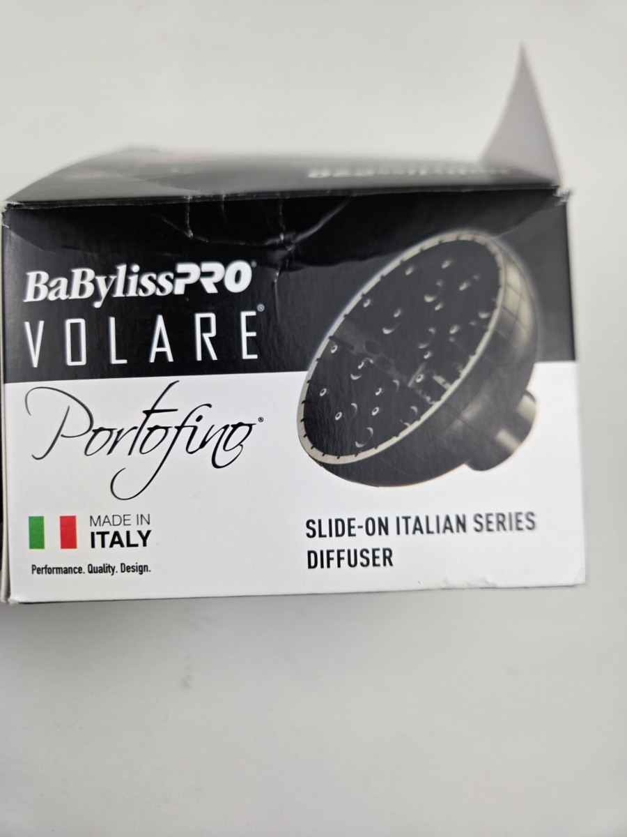 The BaBylissPRO Diffuser is a slide-on diffuser that is especially designed to fit Volare V1 and Portofino hair dryers. Fits Volare V1, Portofino 6600, Italo Luminoso, models BFV1, BFRV1, BNT6610, BNTB6610, BLBL6350.