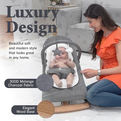 - Baby Bouncer Seat 0-12 Months with Elegant Wood Accents, Bouncer Seat for Infant