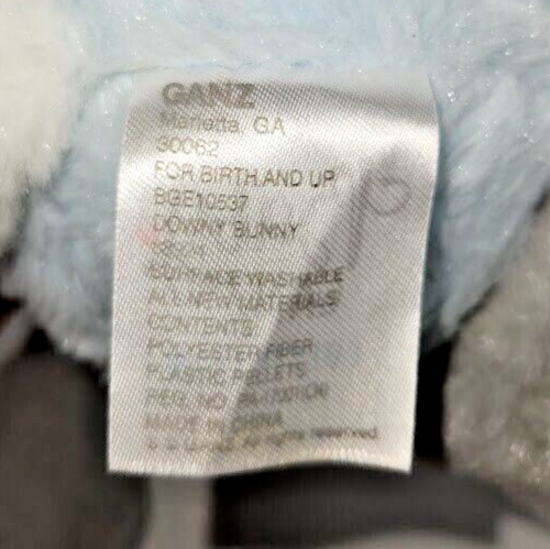 Baby Ganz downy blue/grey bunny plush stuffed animal.