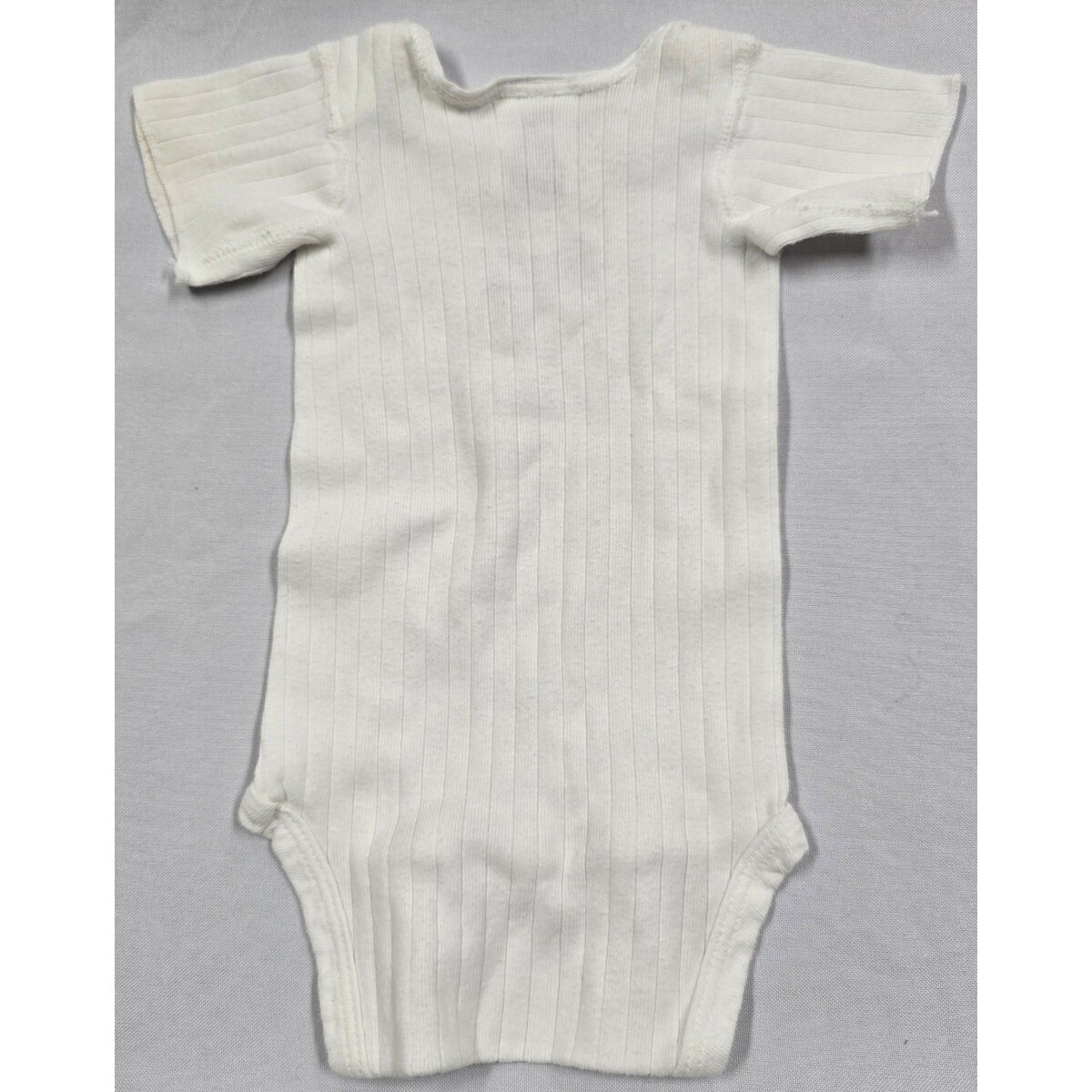 Keywords: baby, onesie, layette, infant, toddler, apparel, clothing, bear, teddy, logo, white, ribbed, short sleeve, cotton, made in usa, True Vintage 80s 90s Y2K