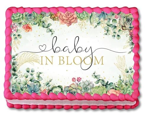 - Baby In Bloom Succulent Theme Edible Image Cake Topper Baby Shower Frosting Shee