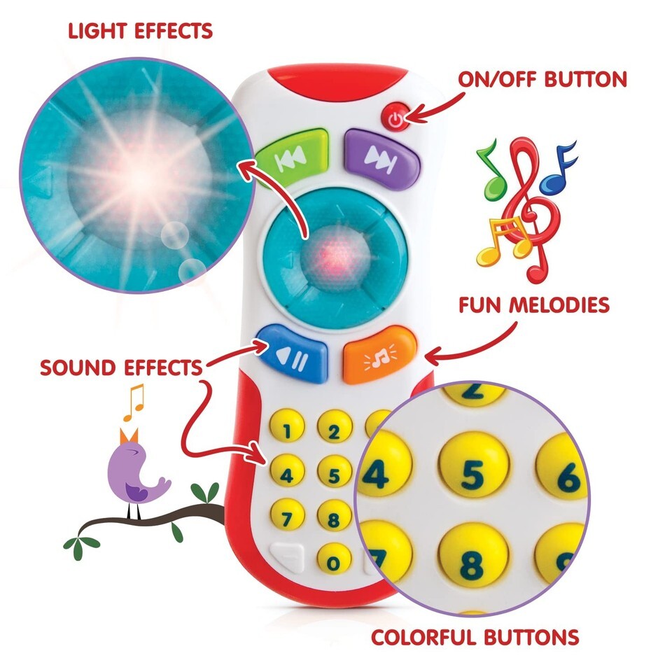 STOP KIDS GRABBING THE REMOTE Even babies quickly spot the things we use a lot and want to investigate. Keep your remotes from getting chewed on by adding this baby remote control toy to your collection. Designed to mimic a real remote, it has over 15 fun buttons to press.