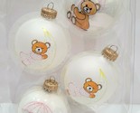 Up for sale we have these adorable glass ornaments for your baby girl. The ornaments have a teddy bear and 2 are sleeping and 2 are holding a pink umbrella. These measure approx 3". These are new in box.