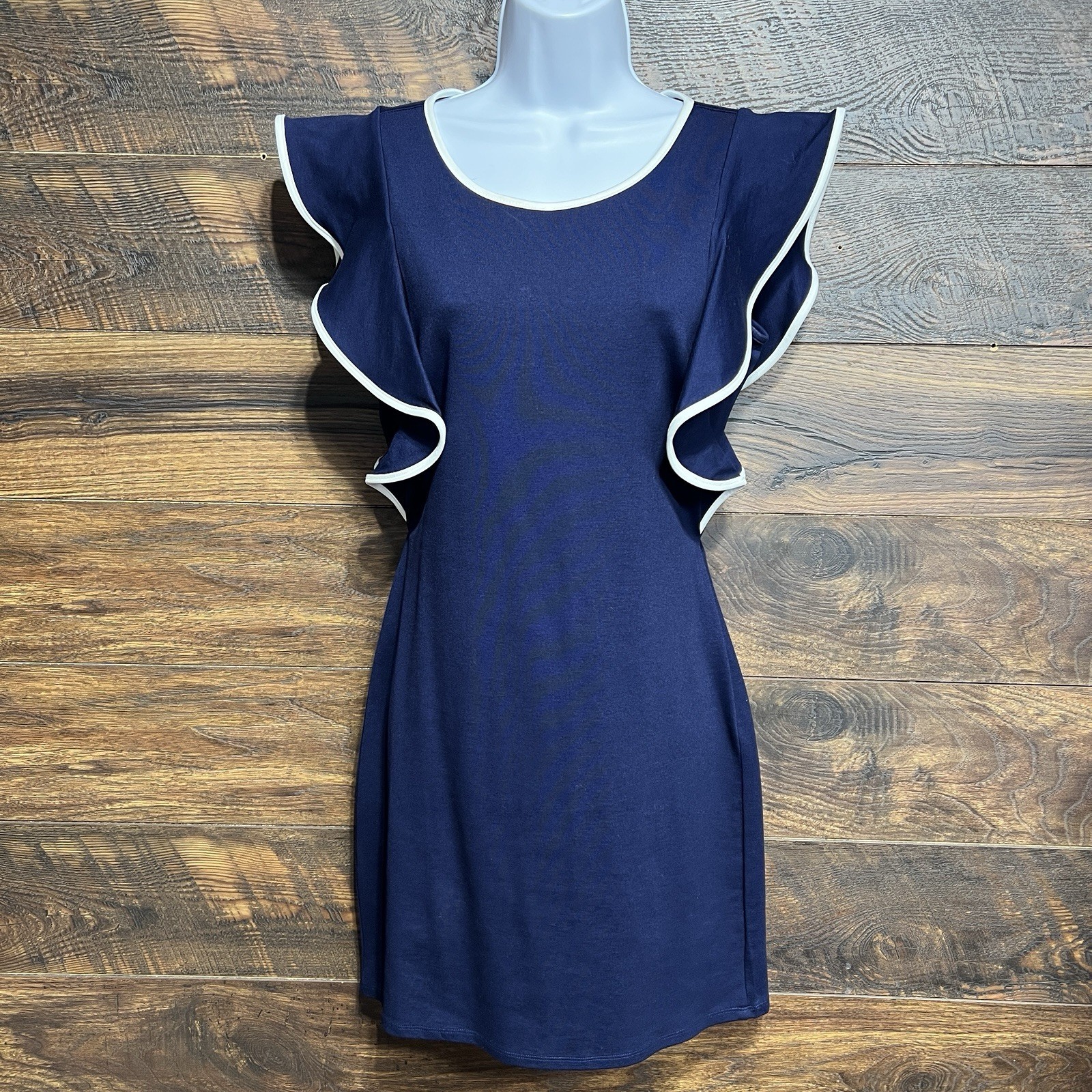 - Babydoll Shift Dress Navy Blue Medium Women Flutter Sleeve White Trim Careercore