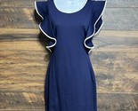 Babydoll Shift Dress Navy Blue Medium Women Flutter Sleeve White Trim Careercore