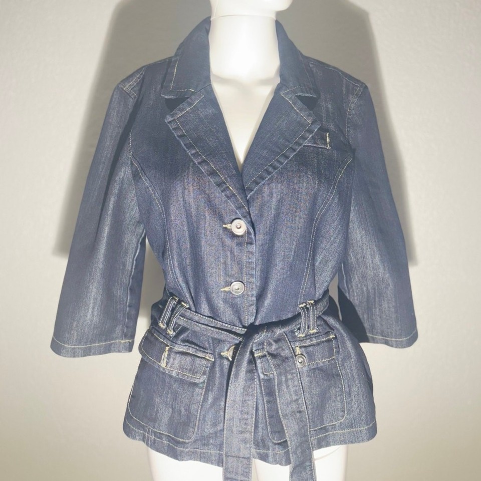 Baccini Denim Belted Jacket Size M