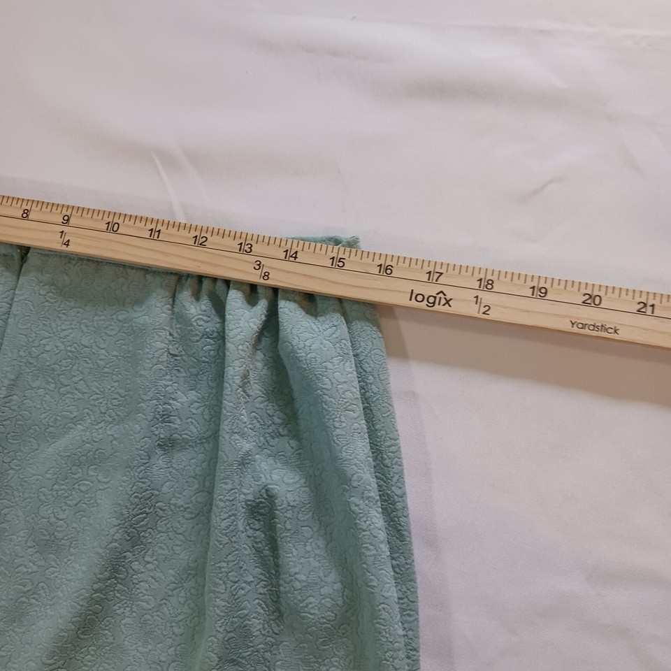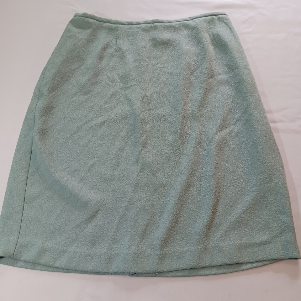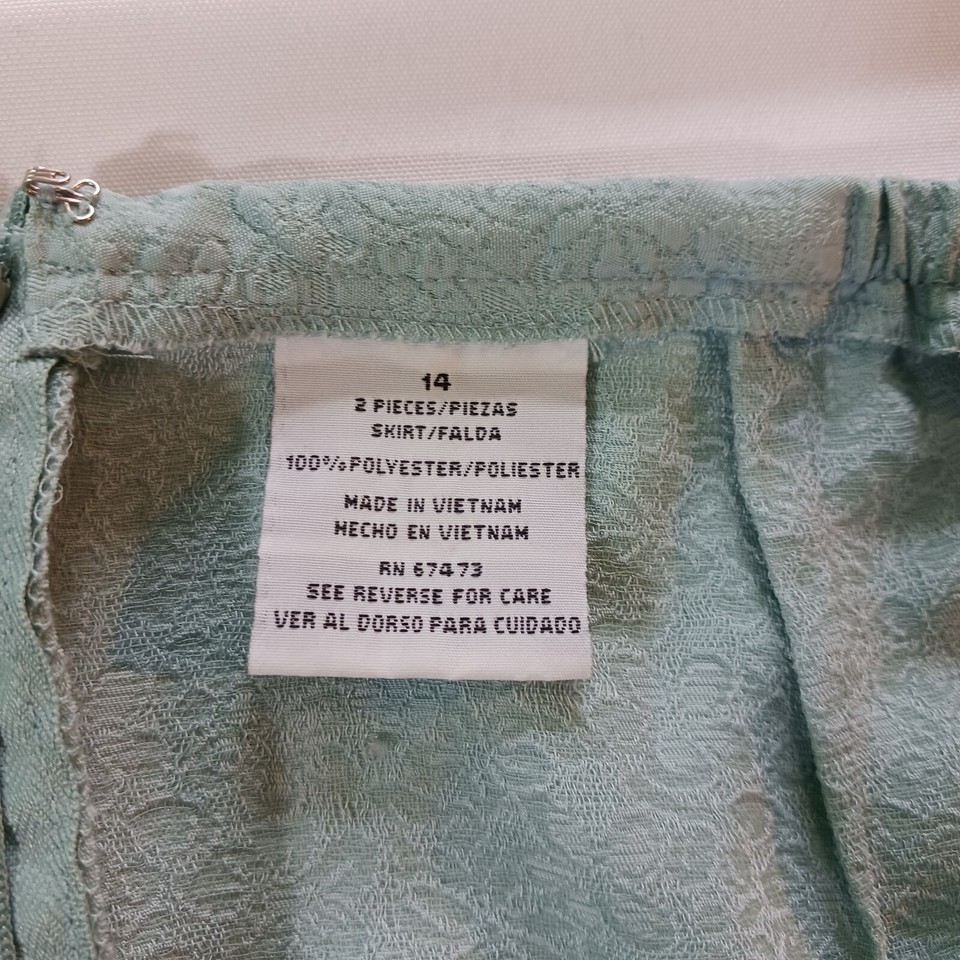 This beautiful mint-colored skirt is perfect for any occasion. The back zipper and elastic waist provide a comfortable fit, while the A-line style and 23.5-inch length make it a flattering choice for any body type. The skirt is made of high-quality polyester material, and the accents include a zipper. The skirt comes in size 14 and has a measured waist of 24 inches.