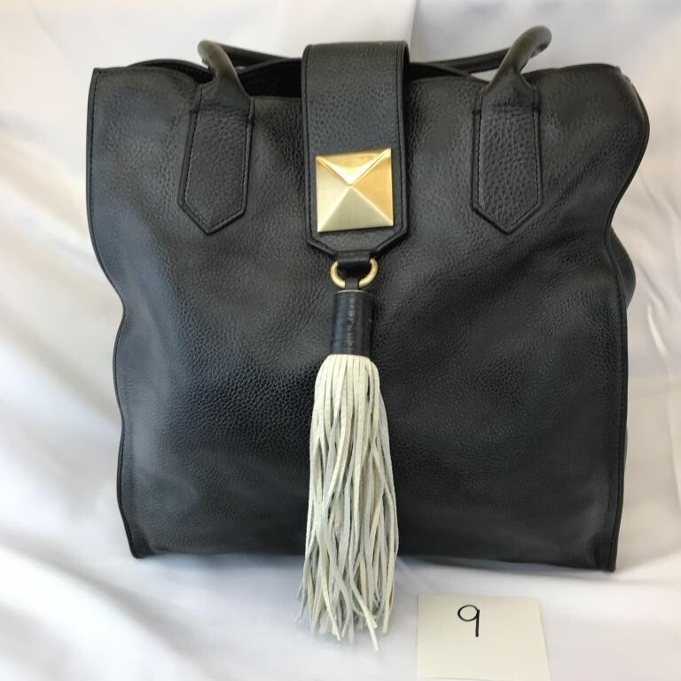 The Badgley Mischka Shoulder/crossbody handbag is a stylish and versatile accessory suitable for both men and women. Made of black leather with a white lining, this large handbag features a convenient crossbody style for easy carrying. Perfect for daily use, the sleek design and brand name ensure a touch of luxury in any outfit.