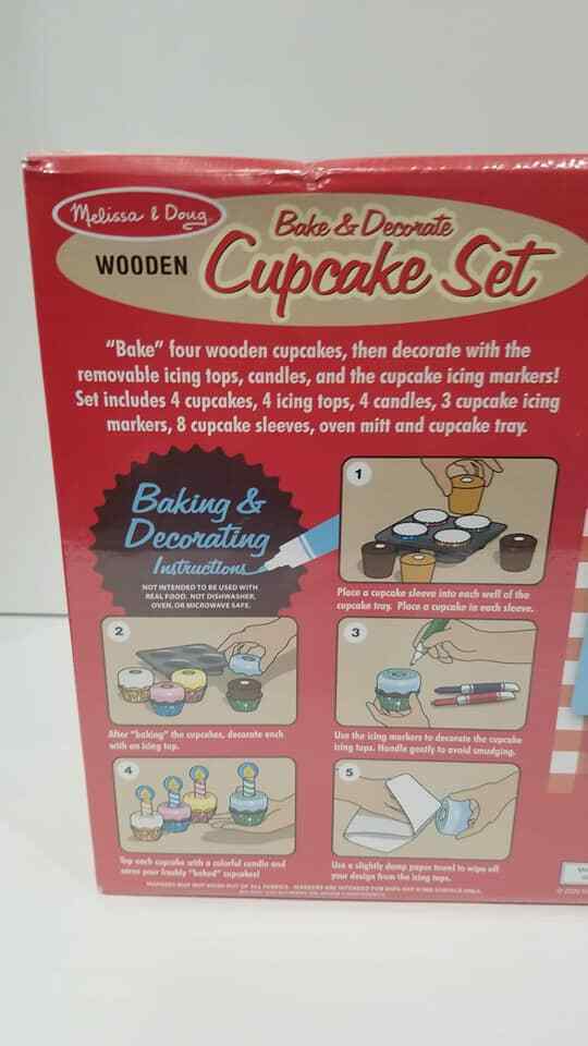 Be sure your little baker uses the oven mitt to remove these 4 delectable-looking wooden cupcakes from their cupcake baking tray! This special set has 3 dry-erase markers shaped like icing tubes to decorate the smooth, removable, wipe-off cupcake tops. With 8 colorful baking cupcake sleeves and 4 decorative wooden candles, these low-cal cupcakes will be the hit of playtime birthday and tea parties!