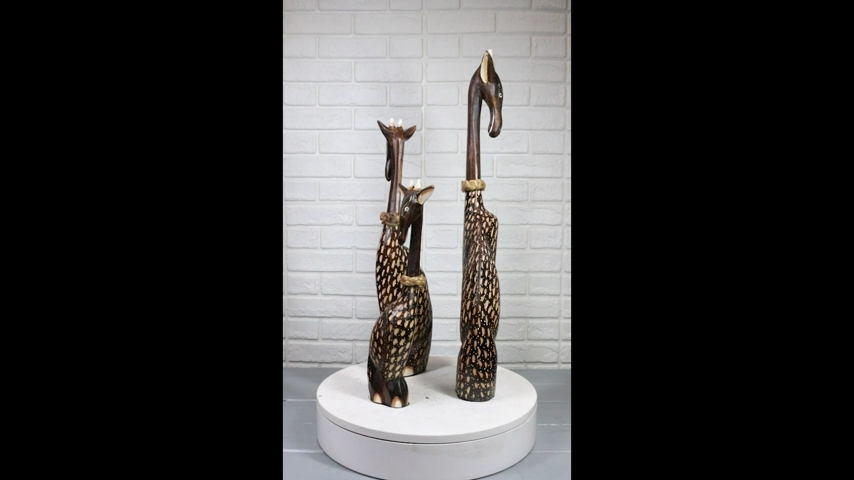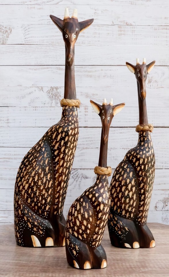 - Balikraft Balinese Wood Handicrafts Large Safari Giraffe Family Figurine Set
