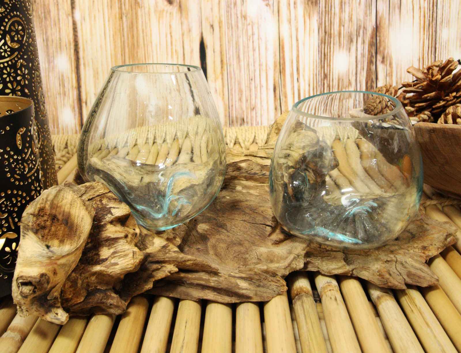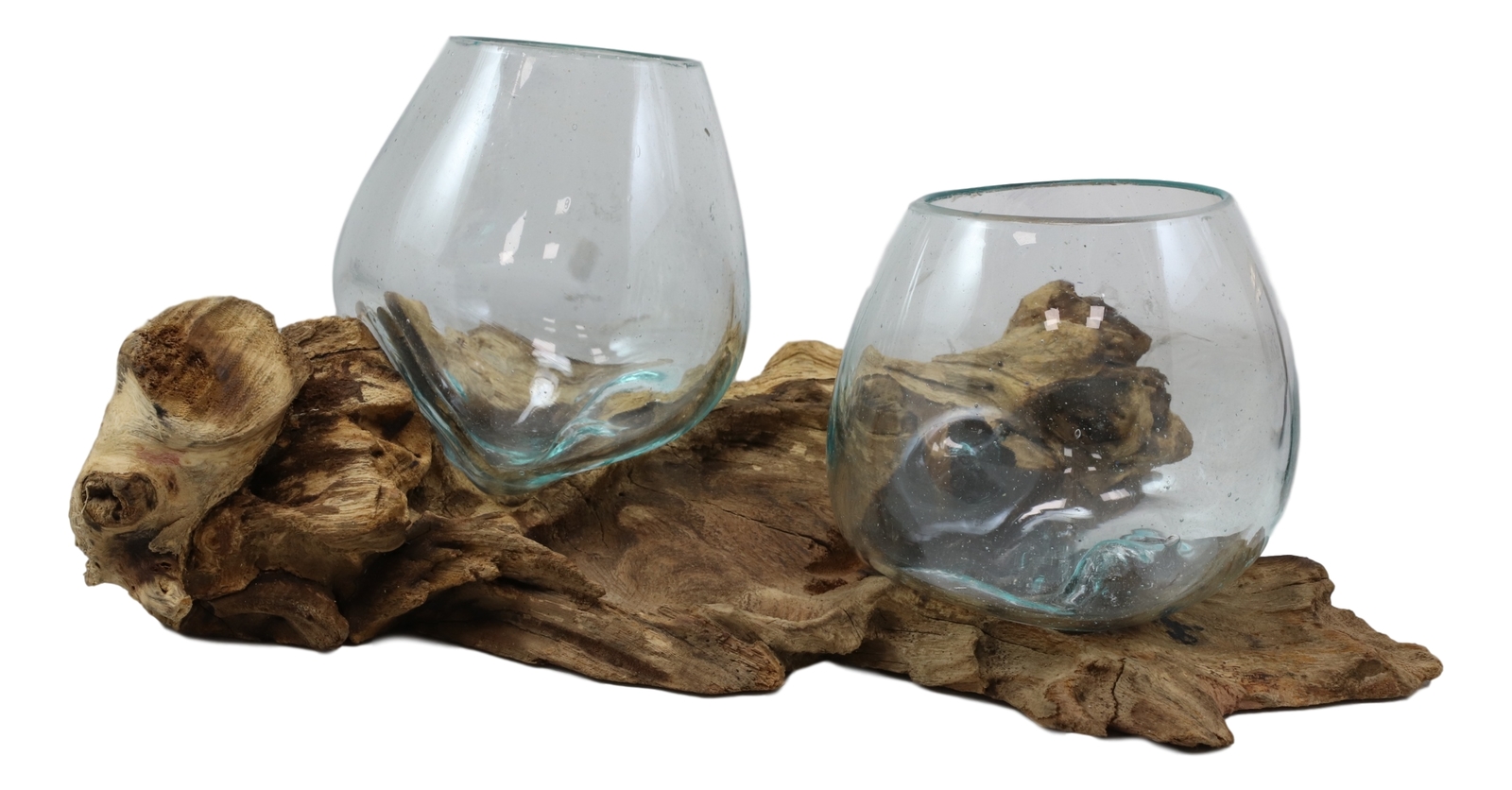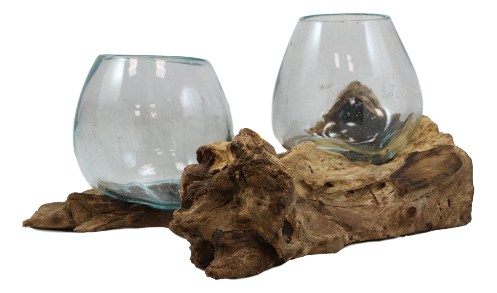 - Balinese Handicraft Natural Driftwood Root With 2 Molten Hand Blown Glasses 11oz