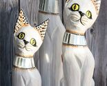 Balinese Wood Handicraft White Siamese Feline Cat Family Set of 3 Figurines 24"H