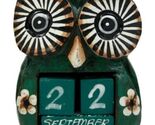 Balinese Wood Handicrafts Hypnosis Eyed Green Owl Desktop Calendar Figurine 4.5"