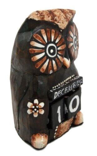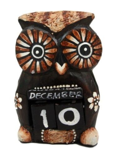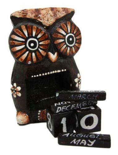 - Balinese Wood Handicrafts Hypnosis Eyes Nocturnal Owl Desktop Calendar Figurine