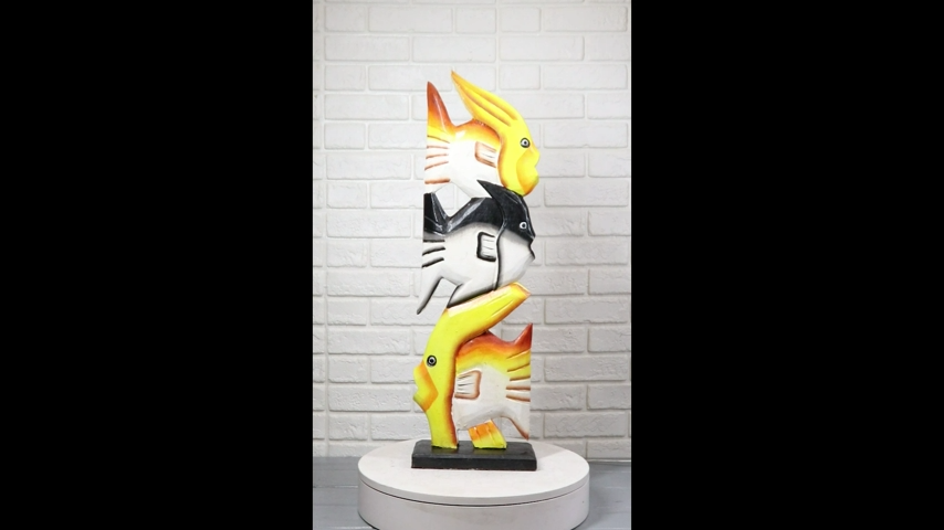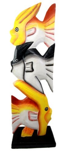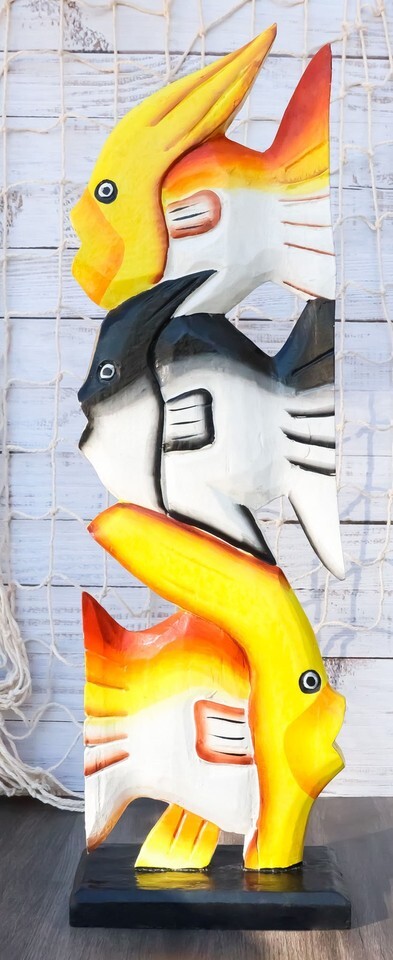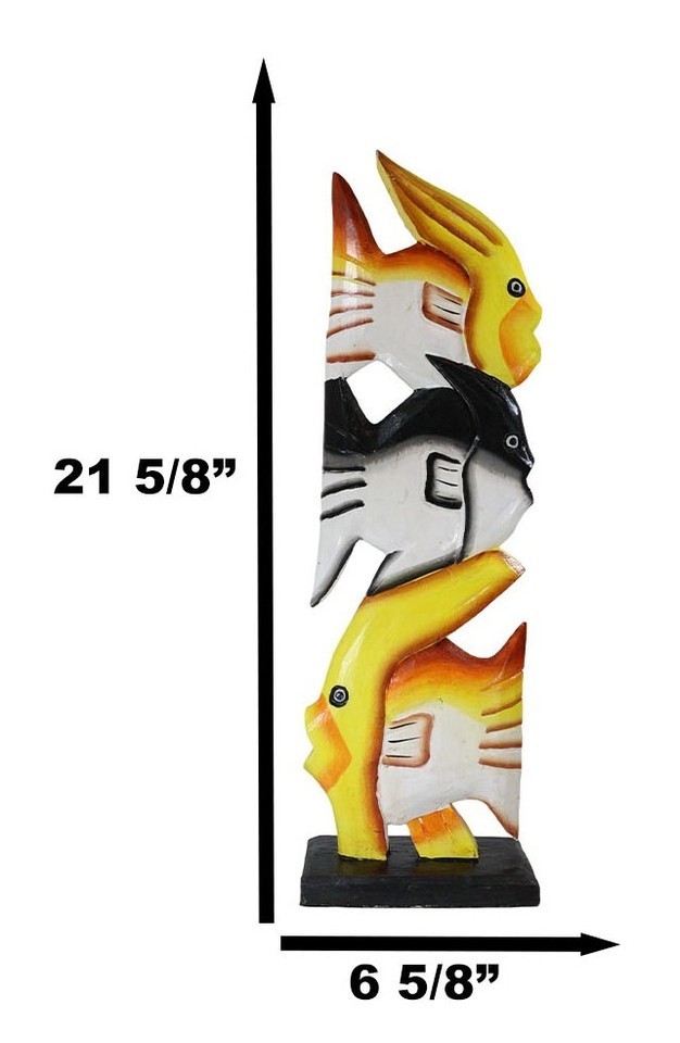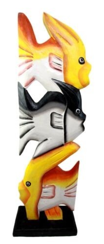 - Balinese Wood Handicrafts Stacked Tropical Colorful Fish Family Figurine 21"H