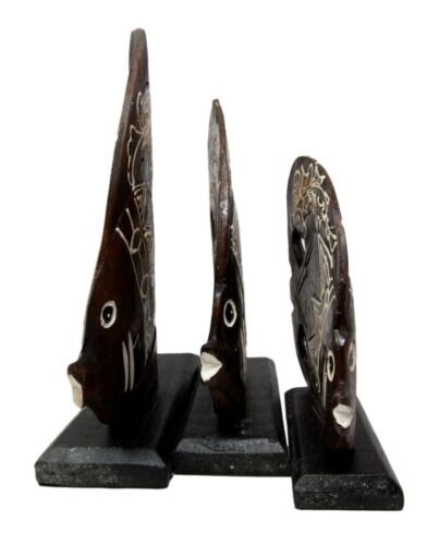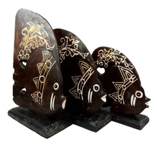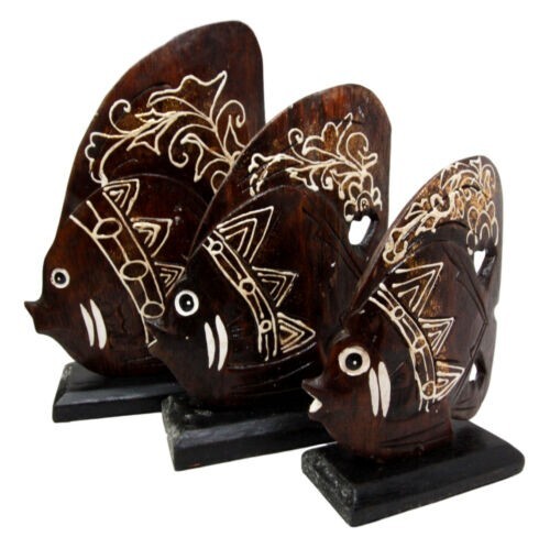 - Balinese Wood Handicrafts Tropical Crown Angel Fish Family Set of 3 Figurines