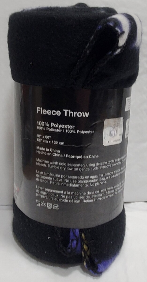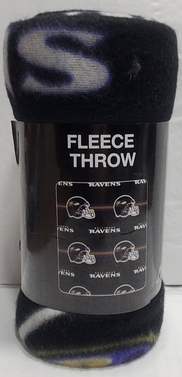 This is a 50" by 60" Baltimore Ravens Fleece throw blanket.