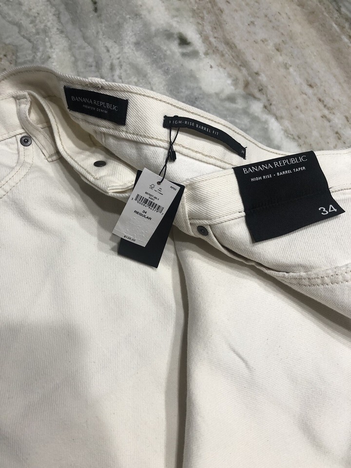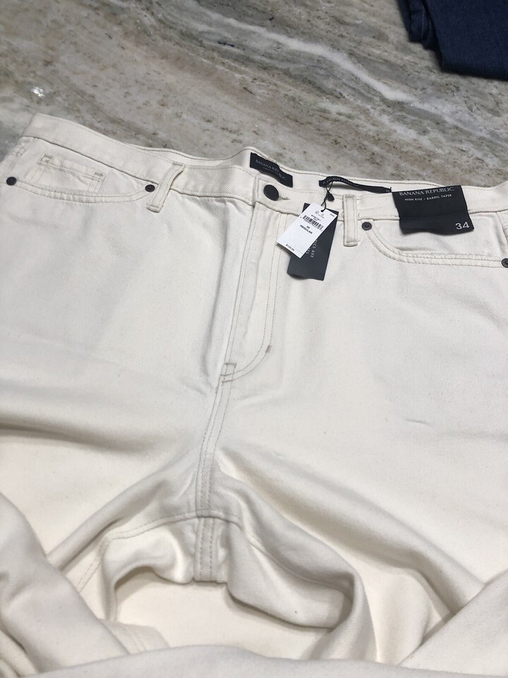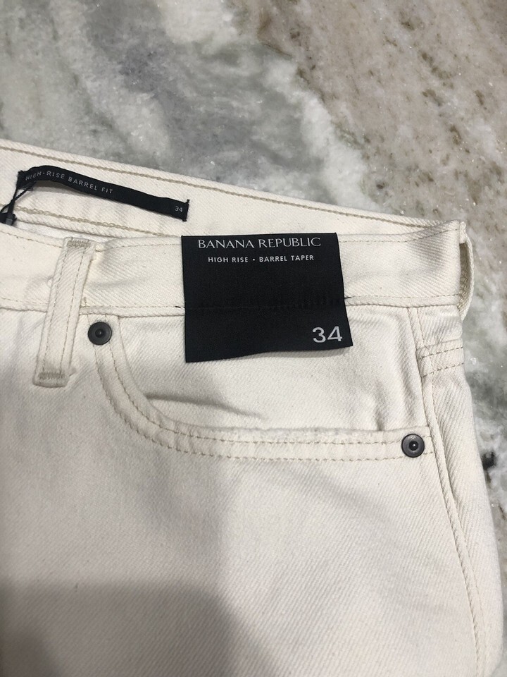 - Banana Republic 34 Regular High-Rise Barrel Fit/Barrel Pants -White