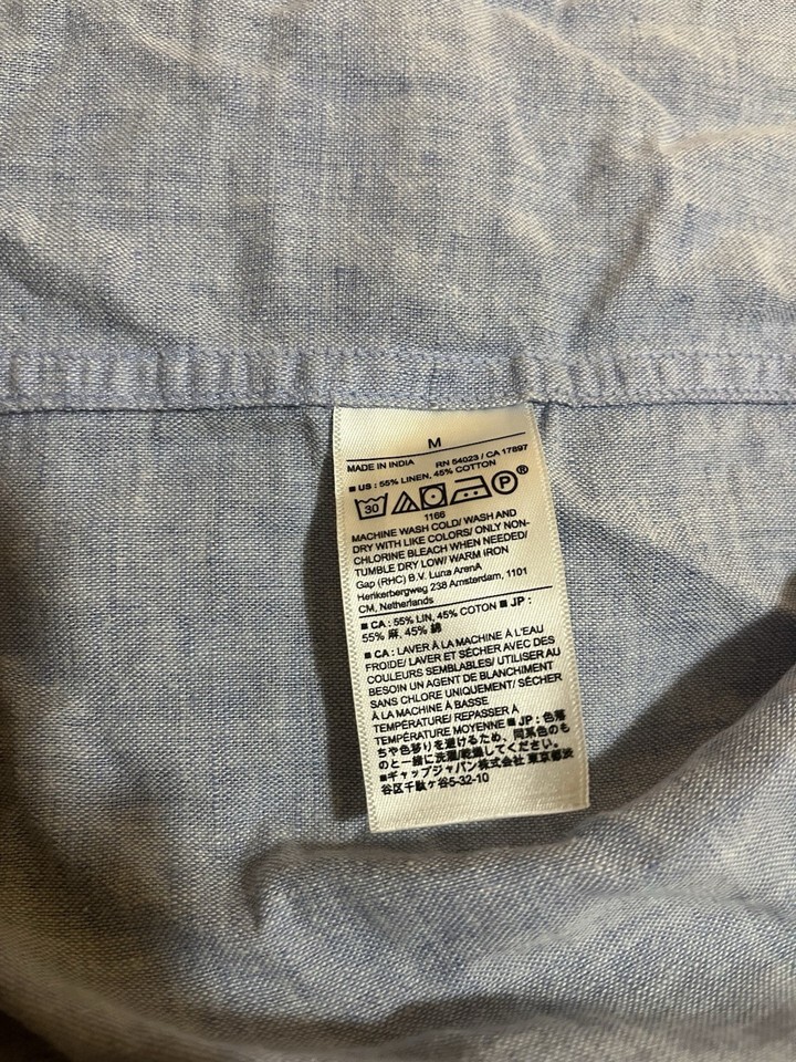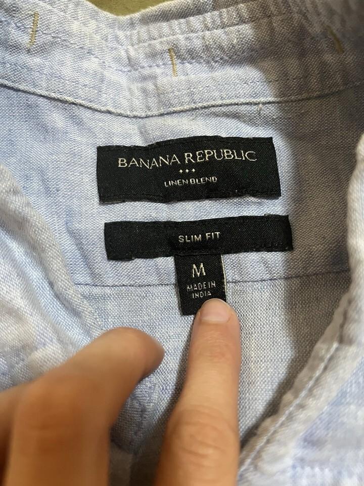 - Banana Republic Men’s Blue Linen Blend Short Sleeve Button Up Shirt Medium