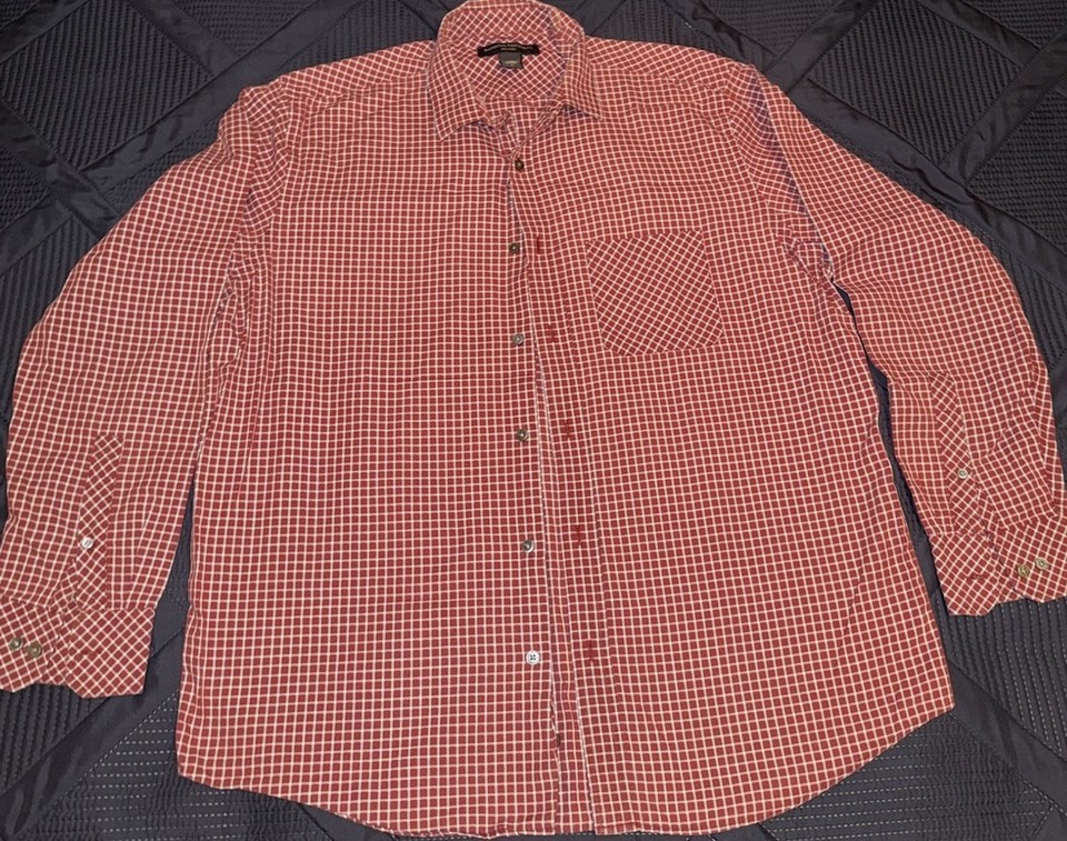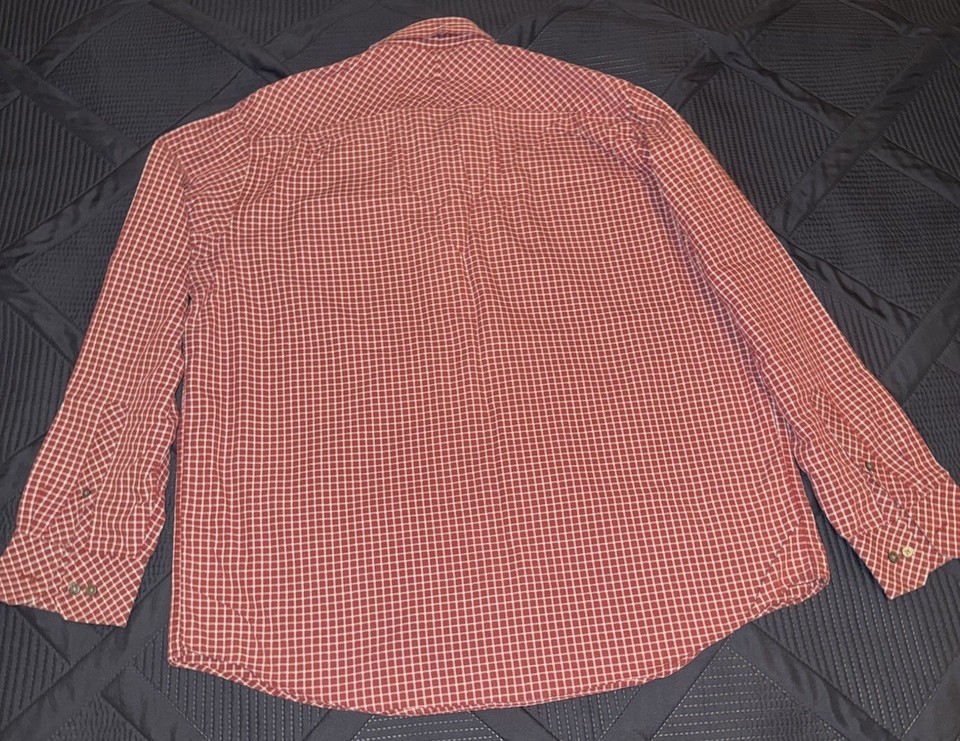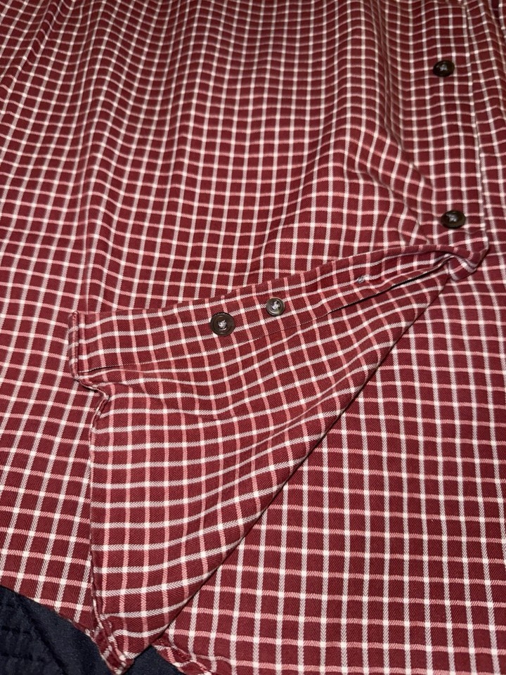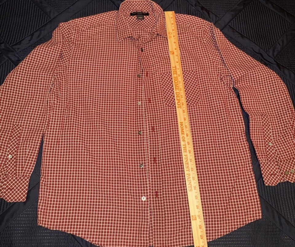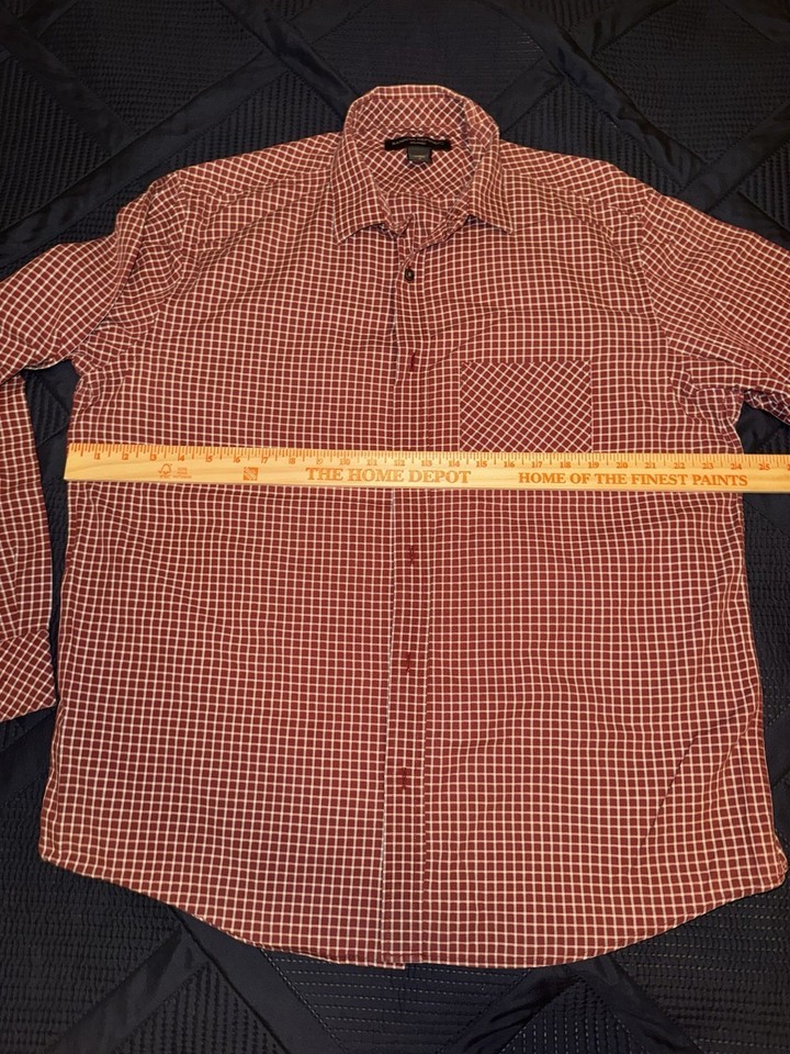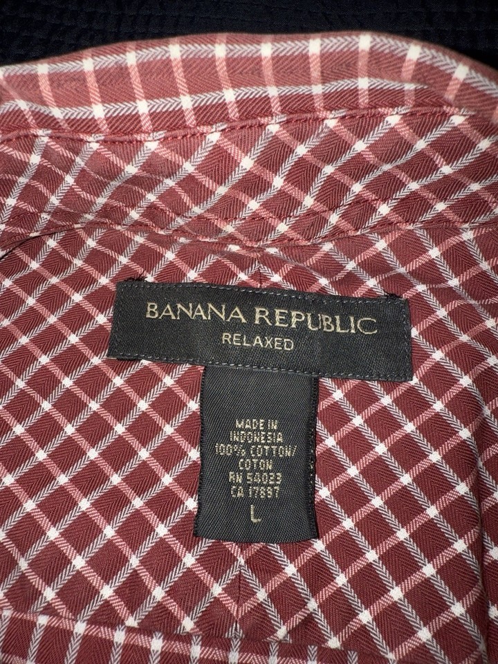 - Banana Republic Shirt Mens Size Large Burgundy Check Plaid Button Up Relaxed Fit