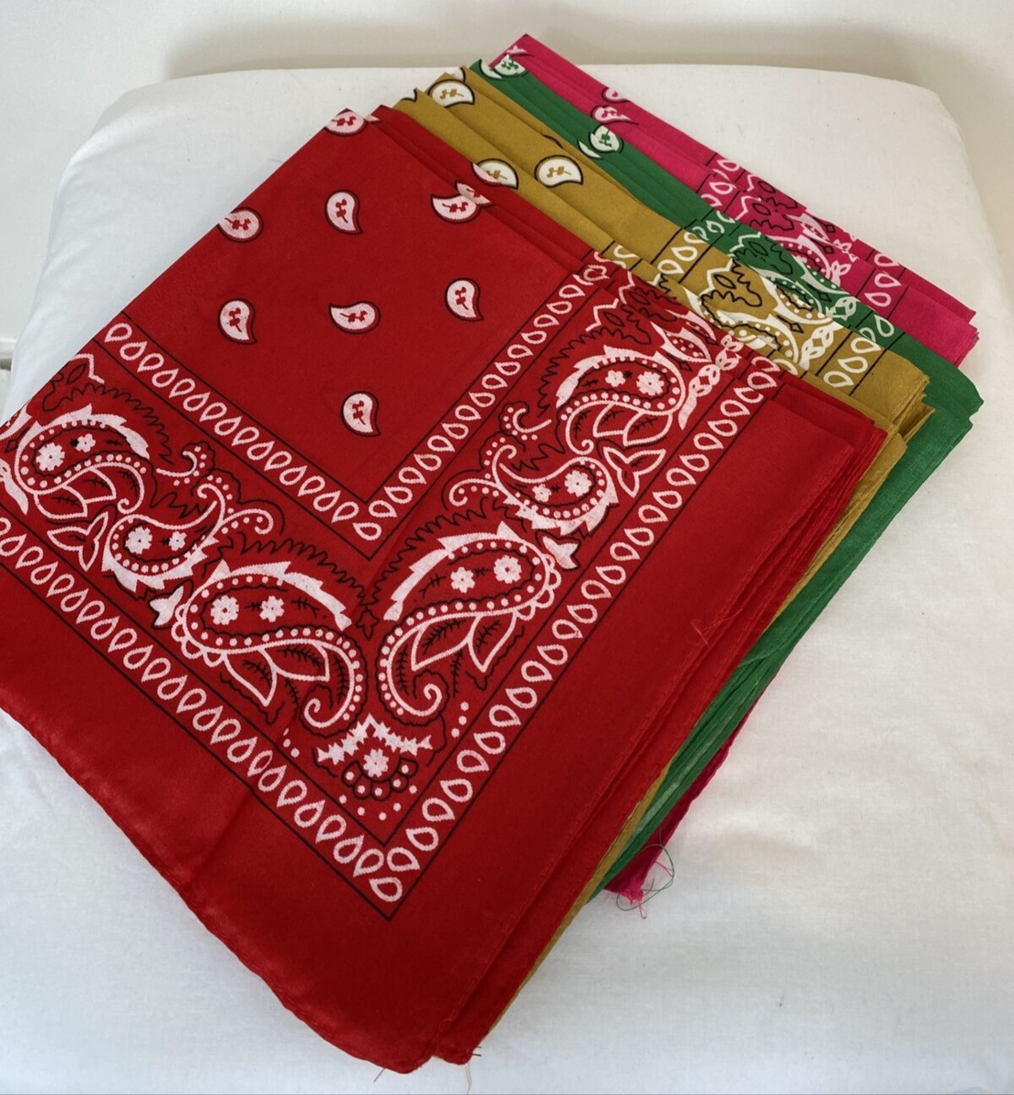 Bandana Scarves Lot of 12 Red, Green, Gold, Pink 21" NEW