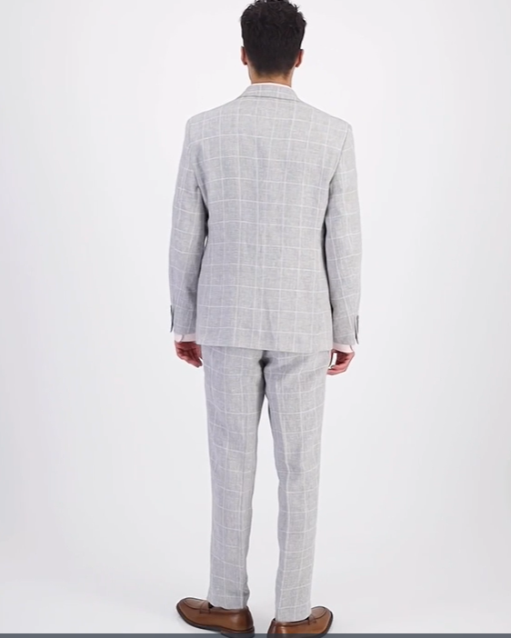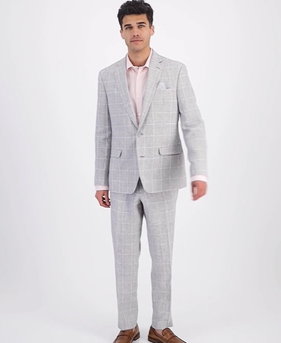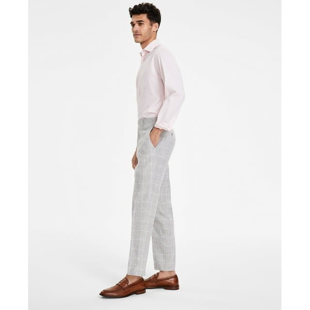 Present a refreshing professional look at the office or out on the town with the polished slim fit and Grey plaid tone of these luxe linen suit pants from Bar III.