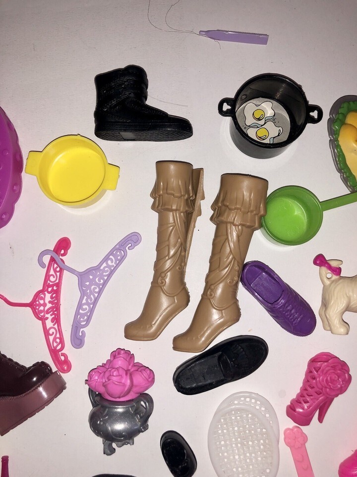 - Barbie 50 Piece Accessories Lot Shoes Brush’s Cake Pots Boots Tennis Rackets