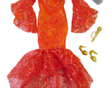 - BARBIE CELIA CRUZ Complete Outfit RED LACE GOWN DRESS Jewelry Mic for CURVY DOLL