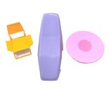 This vintage Barbie patio furniture set comes with all three pieces as shown in pictures. The yellow chair can be folded up and there is also a purple lounger and pink table. Furniture is in good, clean, pre-owned condition. I do have more Barbie stuff at my shop and do offer combined shipping.
