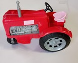 The Barbie Red and Pink Tractor from Sweet Orchard Farm is a 2017 toy manufactured by Mattel. This gender-neutral farm tractor features a red color with a trailer hitch for playability. Made of plastic, this Barbie franchise accessory is designed for 11-inch dolls and reflects an original 2017 release for the era. Perfect for young Barbie fans who enjoy imaginative play on the farm, this tractor is a cute and vibrant addition to any doll collection. Good condition with normal wear and sizes are approximate.