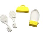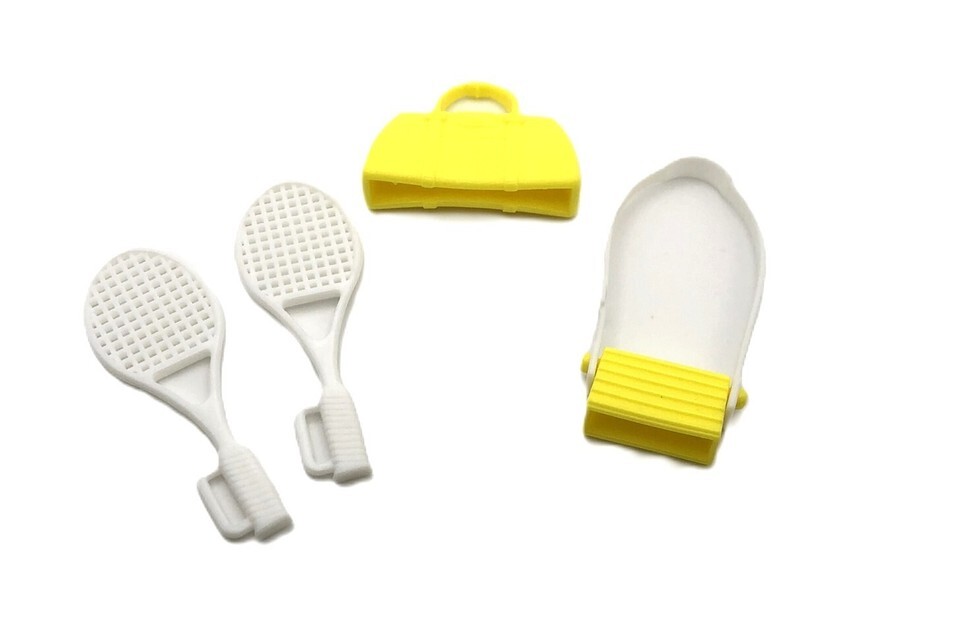 - Barbie Sporting Accessory Lot With Tennis Rackets and Bags Yellow