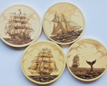 - Barlow American Ships Scrimshaw 1970's Coasters Set Of 4, Cork Back, Never Used!