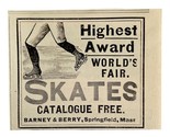 Barney & Berry Ice Skates Worlds Fair 1894 Advertisement Victorian 3 ADBN1yy