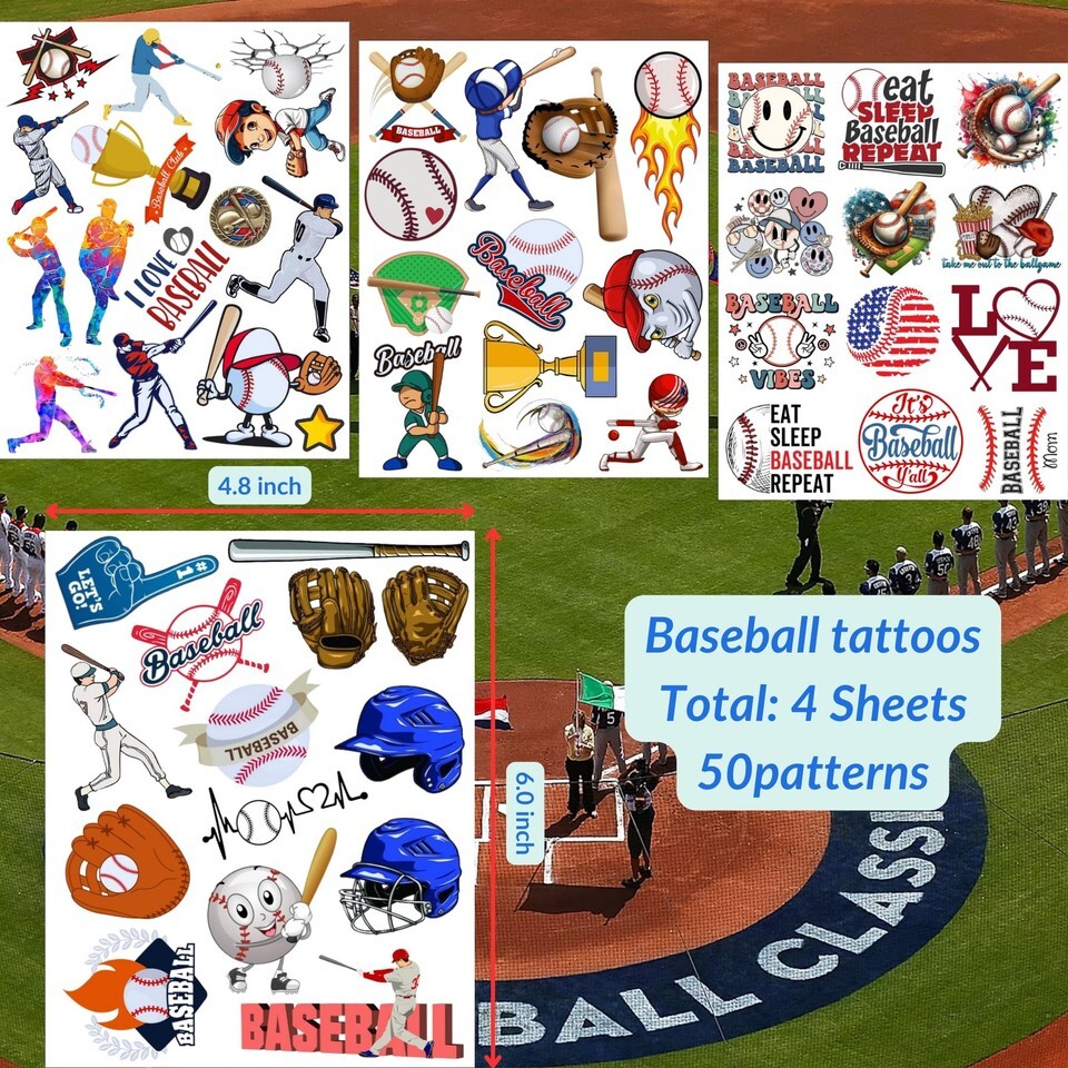 Brand: Vikaparkmaz. Product: Sport Tattoos For Birthday Decorations. Quality: 4 sheets, 50pieces. Theme: Baseball. Gift idea for any occasion.
