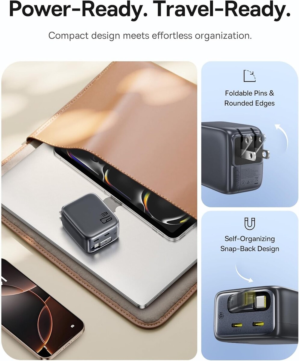 - Baseus Enercore CJ11 Retractable USB C Charger, 67W 3 in 1 Fast Charging Block w
