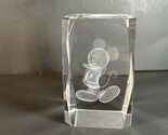 - Bashful Mickey Mouse 3d Etched Disney Crystal Glass 3"x2" Paper Weight