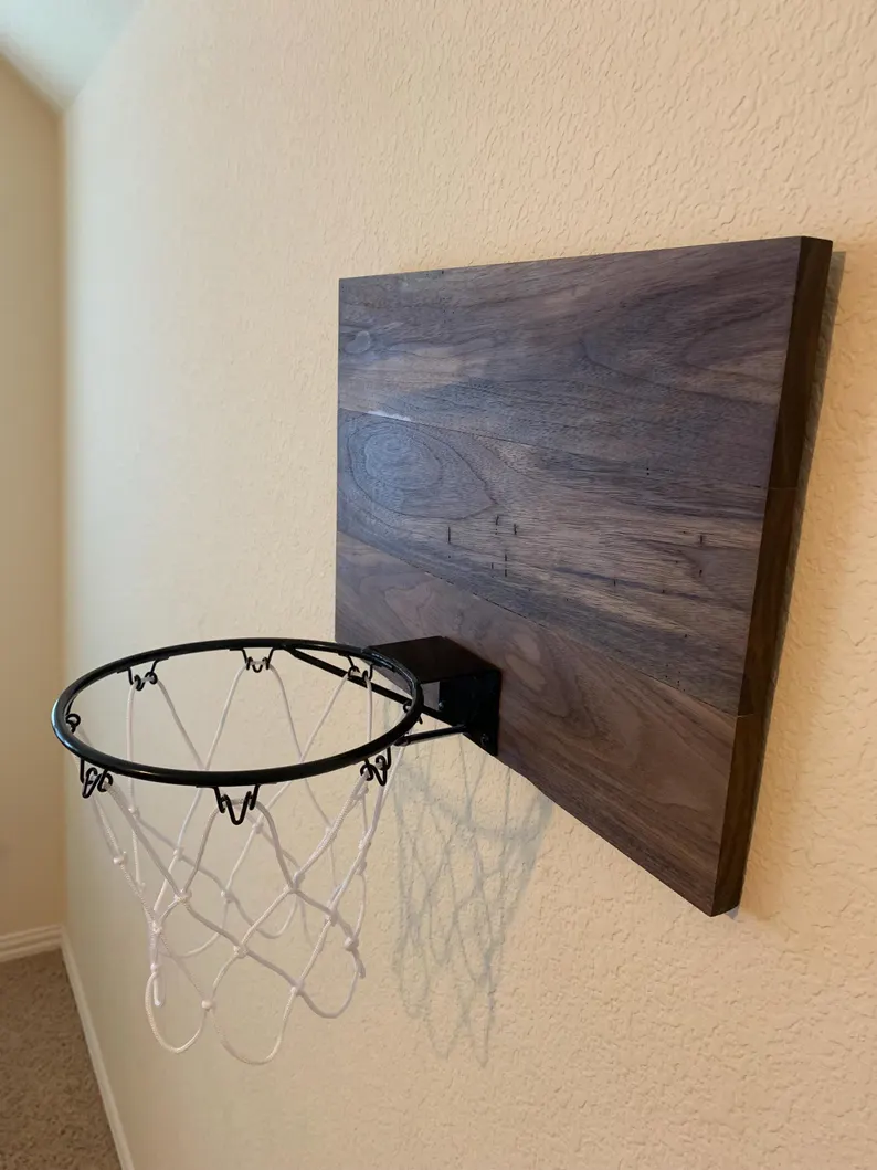 Each hoop is handmade in Texas with care and attention to detail. Unlike store-bought mini hoops, this one is built with quality hardwood, professional-level finishing, and durable materials. The combination of walnut wood, Danish oil finish, carbon steel rim, and clean design makes this a piece that stands apart — whether you’re shooting hoops during a break from work, or simply enjoying the warm look of natural walnut on your wall.