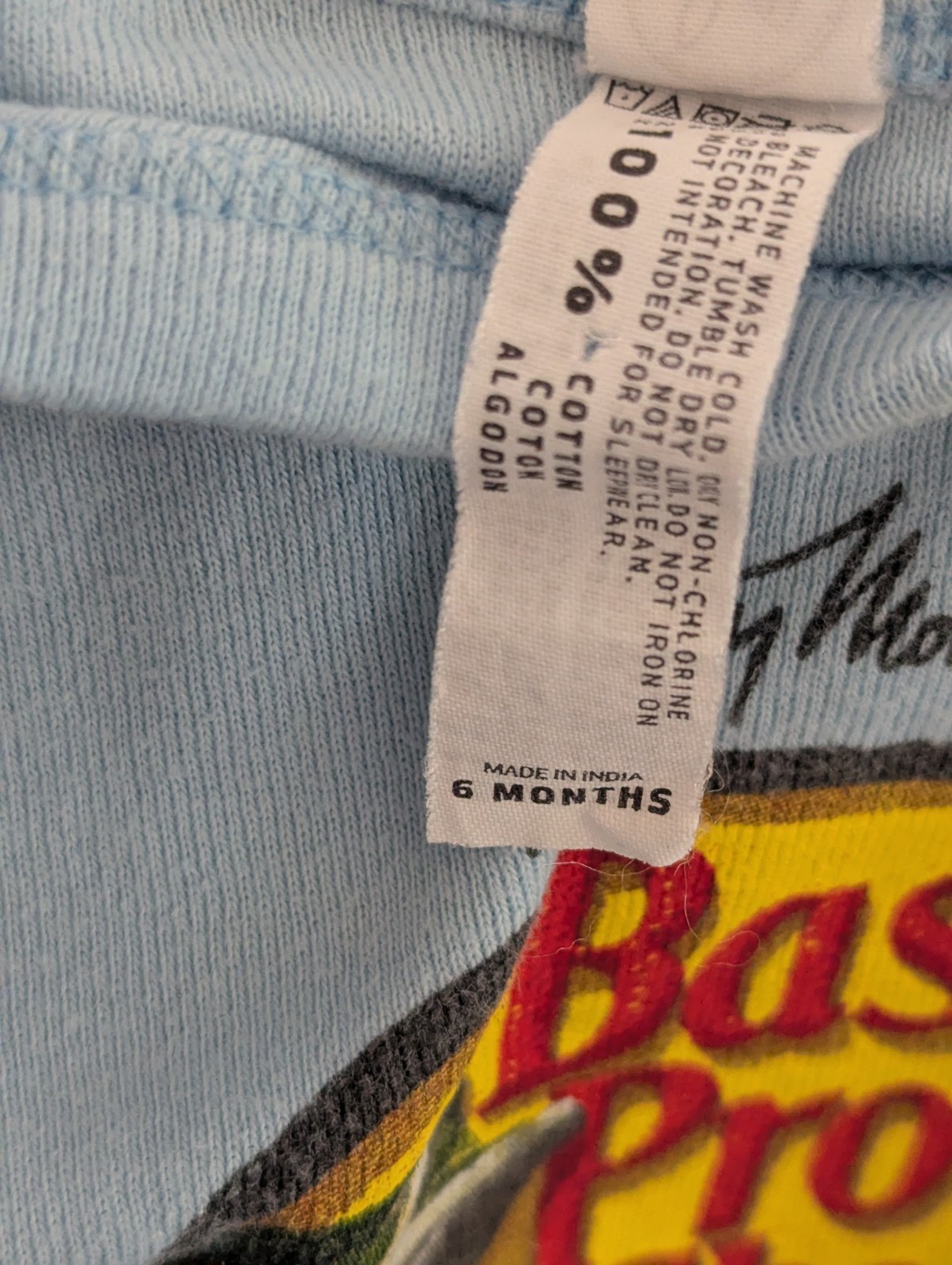- Bass Pro Shops Fishing Bodysuit/Vest Infant Baby 6 Month Soft Blue 100% Cotton