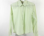 VGC, very good condition. This Bass pastel green white striped stretch long sleeve blouse has buttons down the front buttonsat the cuffs. Great for pairing with jeans or slacks. Normal signs of wear. No missing buttons. No rips, tears or stains.