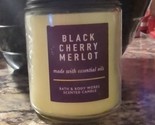 - BATH & BODY WORKS BLACK CHERRY MERLOT 1 WICK CANDLE W/ESSENTIAL OIL WHITE BARN