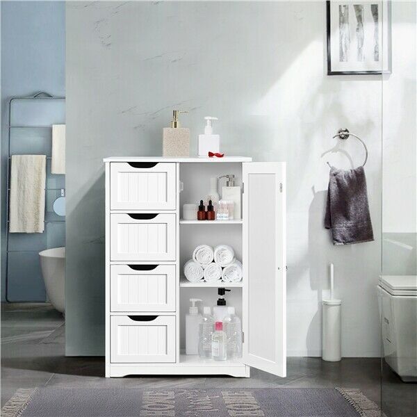 - Bathroom Floor Storage Cabinet with 4 drawers 1 Door Shelf White