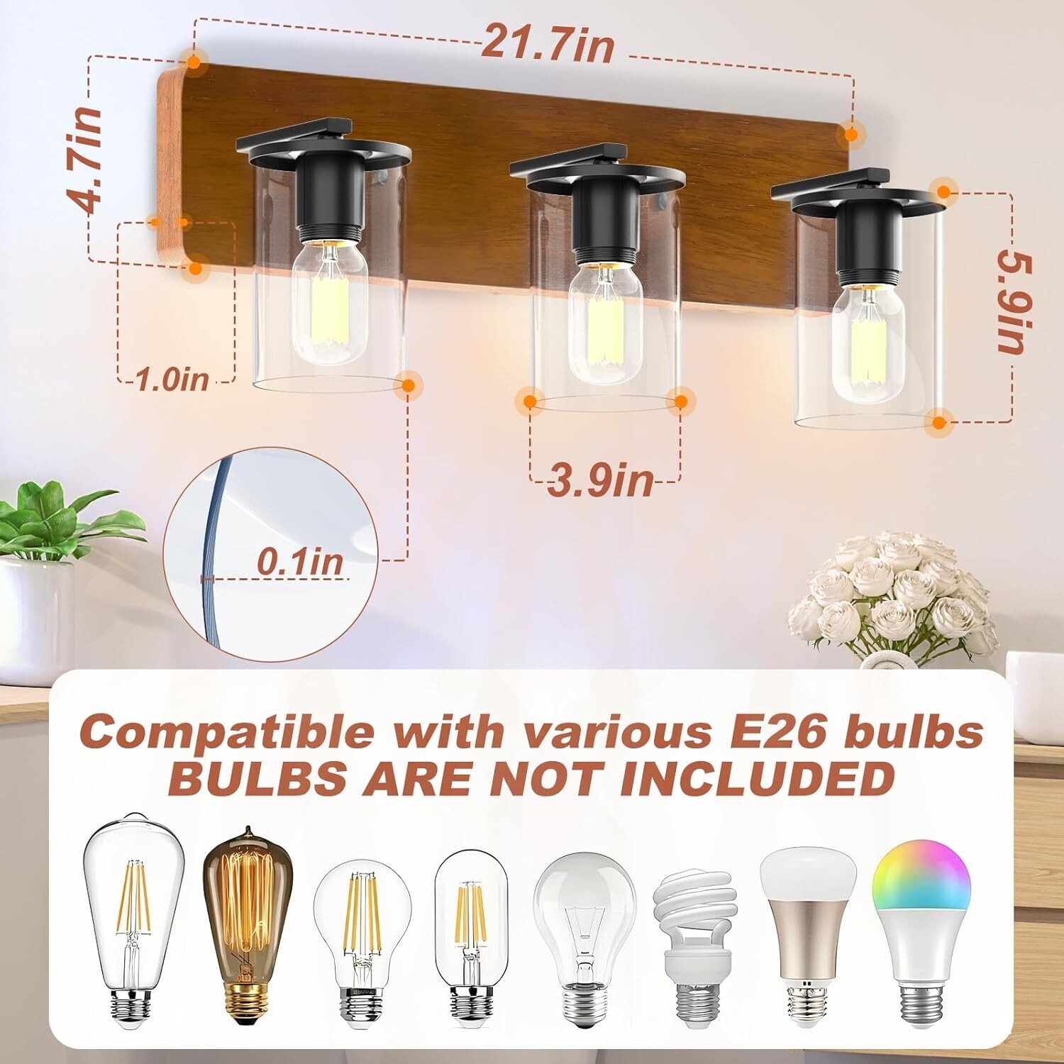 ?E26 Base Compatibility?With dimensions of L21.7? x W4.7? x H8.4?, this bathroom light fixture is compatible with standard E26 bulbs (Max 60W Bulb Not Included). You can use various types of bulbs, including incandescent, LED, or CFL bulbs.When used with dimmable bulbs and compatible dimmers, this wall sconce is fully dimmable, allowing you to adjust the brightness to your needs.