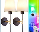 Battery Operated Wall Sconce: Set of 2 Wireless Wall 19.9” Black and Gold