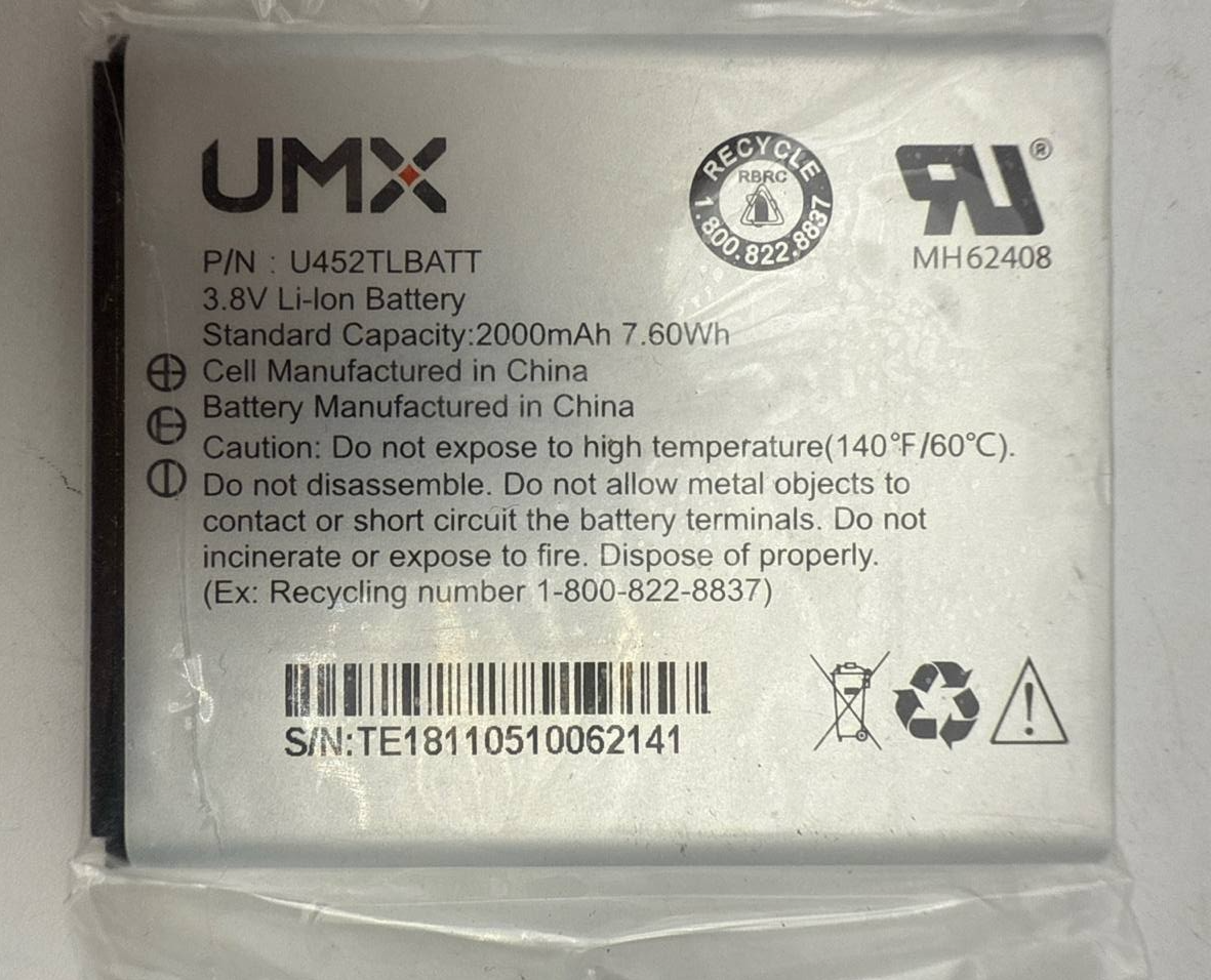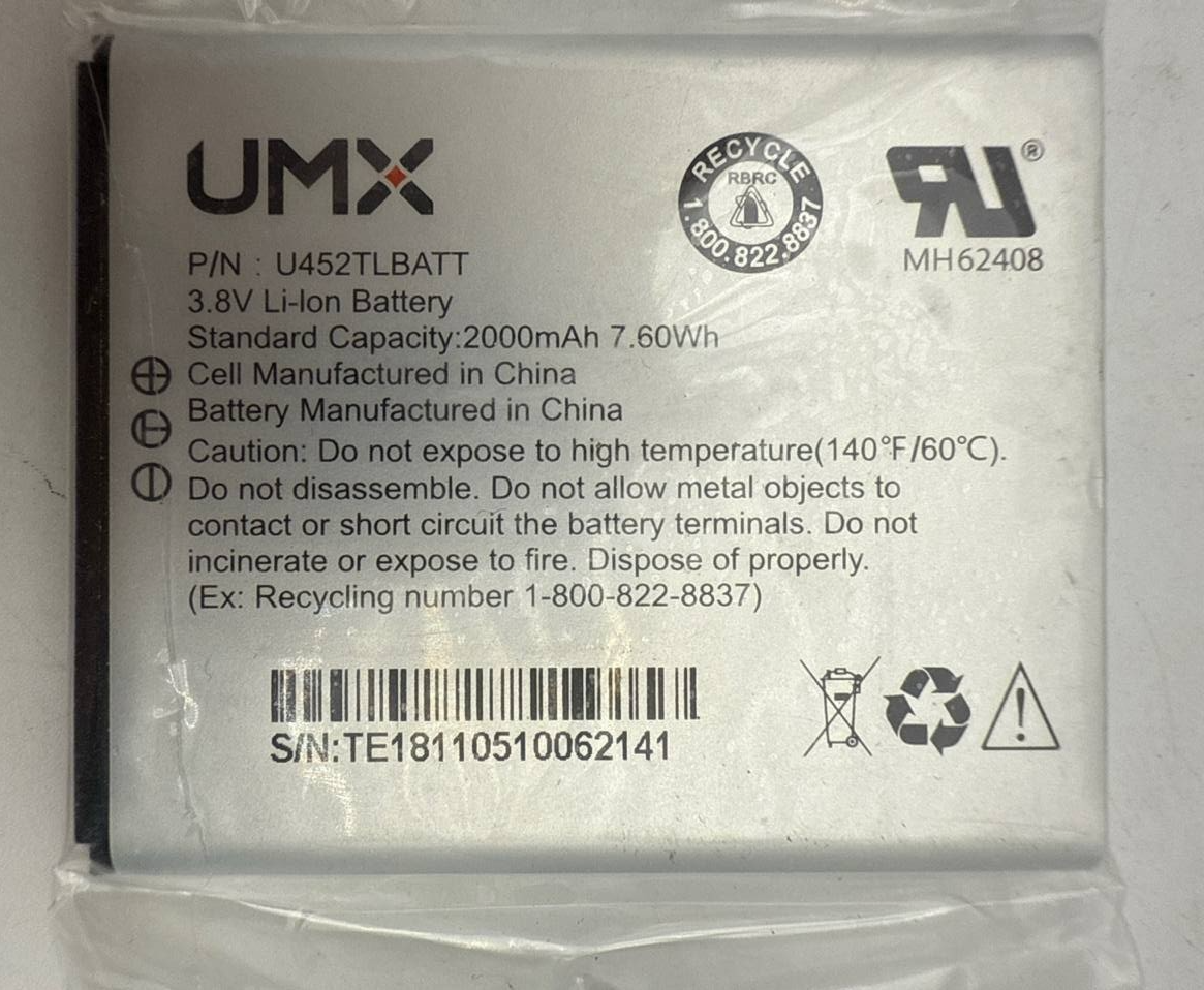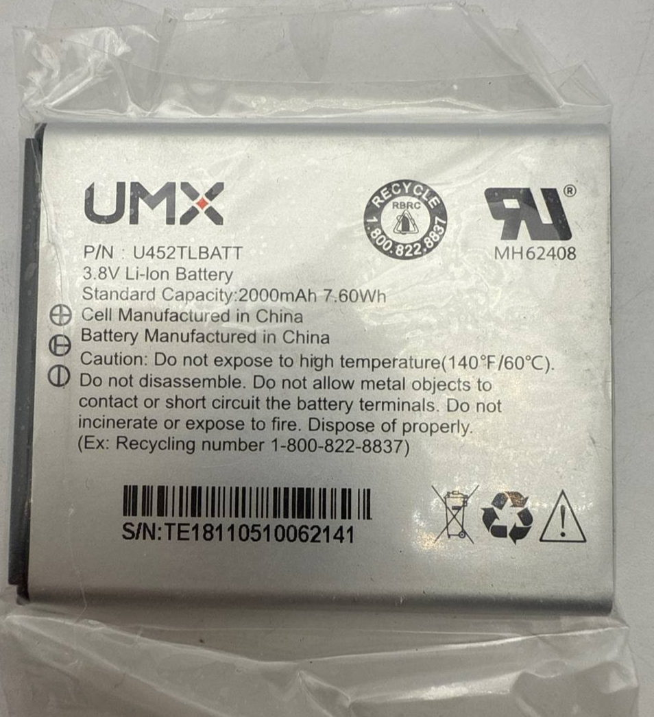 - Battery UMX MH62408 U452TLBATT For UMX U504TL 2000mAh 3.8V OEM Replacement
