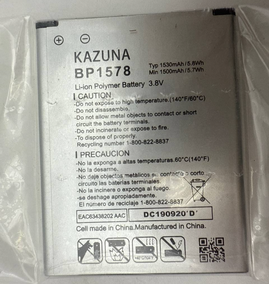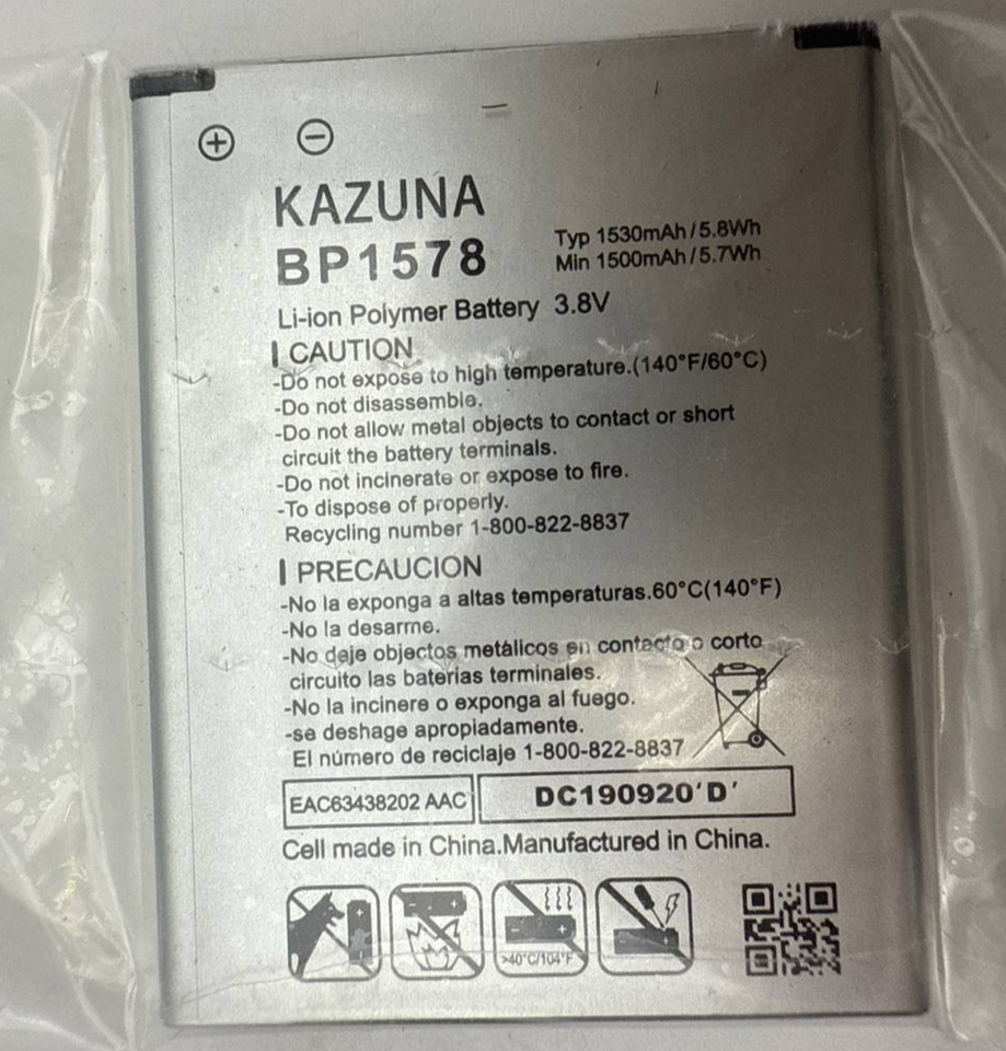 - Battery for Kazuna BP1578 Verizon eTalk 4G F019 F119 1530mAh 3.8V Replacement