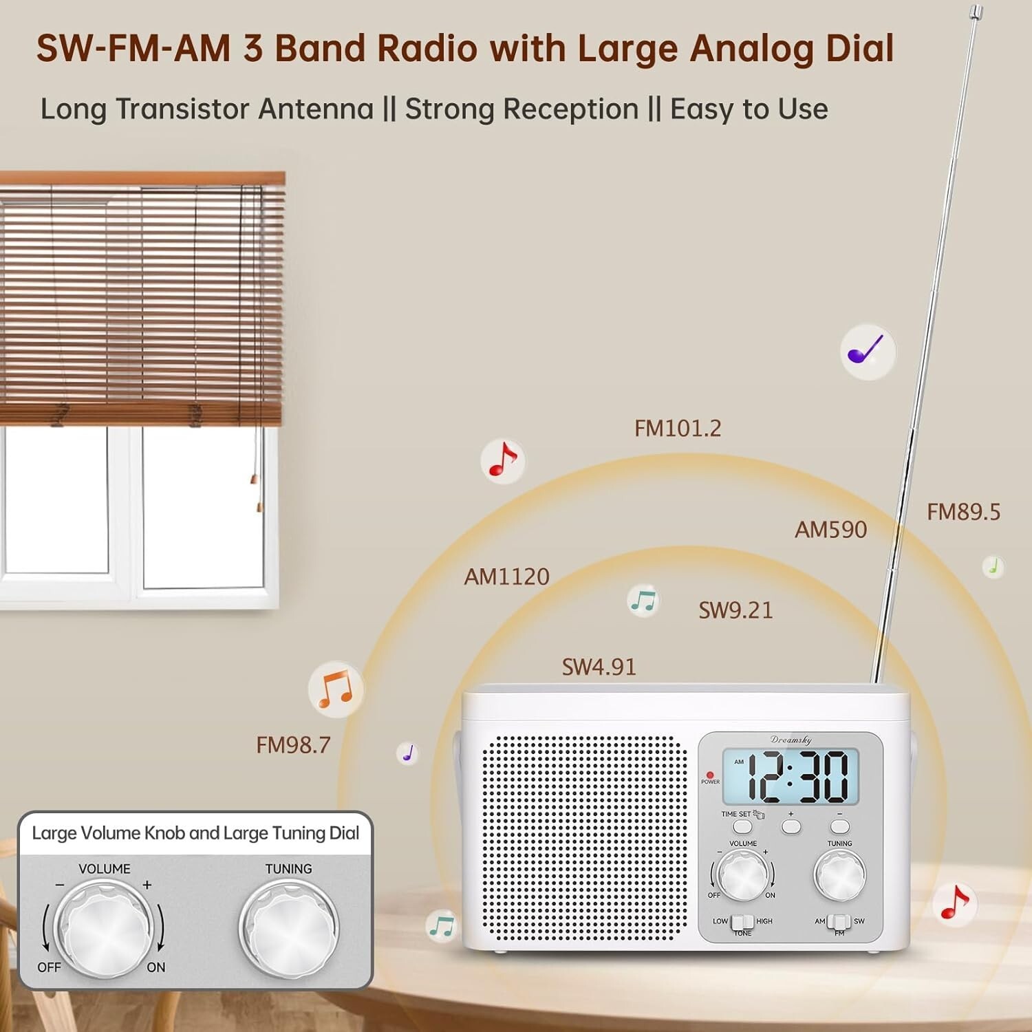 Battery or Plug-In Powered Shortwave Radio with Clear Sound & Easy Controls